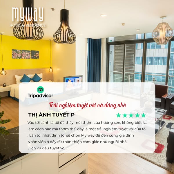 Từ việc chọn vị trí thuận lợi đến không gian nghỉ ngơi tiện nghi, từ bữa tối sang trọng đến dịch vụ hỗ trợ doanh nhân, MyWay không chỉ là nơi nghỉ, mà là người bạn đồng hành đáng tin cậy trên mỗi hành trình.