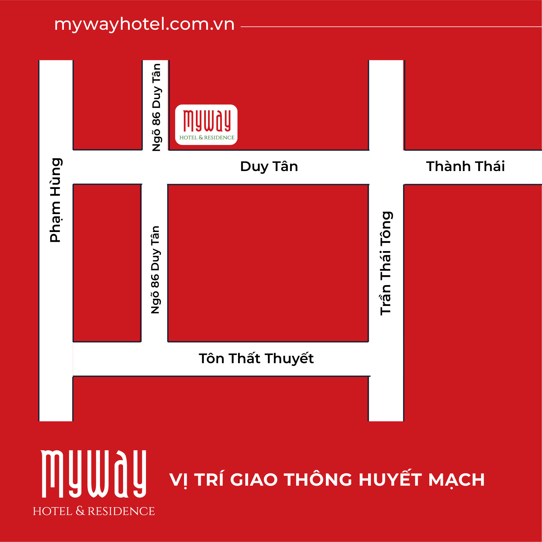 Trong vô số khách sạn tại Hà Nội, không phải nơi nào cũng có vị trí vừa gần Trung tâm Hội nghị Quốc gia, vừa đảm bảo không gian yên tĩnh để nghỉ ngơi sau những giờ làm việc căng thẳng. MyWay Hotel nằm tại 66A Trần Thái Tông, quận Cầu Giấy – khu vực kết nối nhanh tới các trục đường lớn như Phạm Hùng, Trần Duy Hưng, Phạm Văn Bạch.