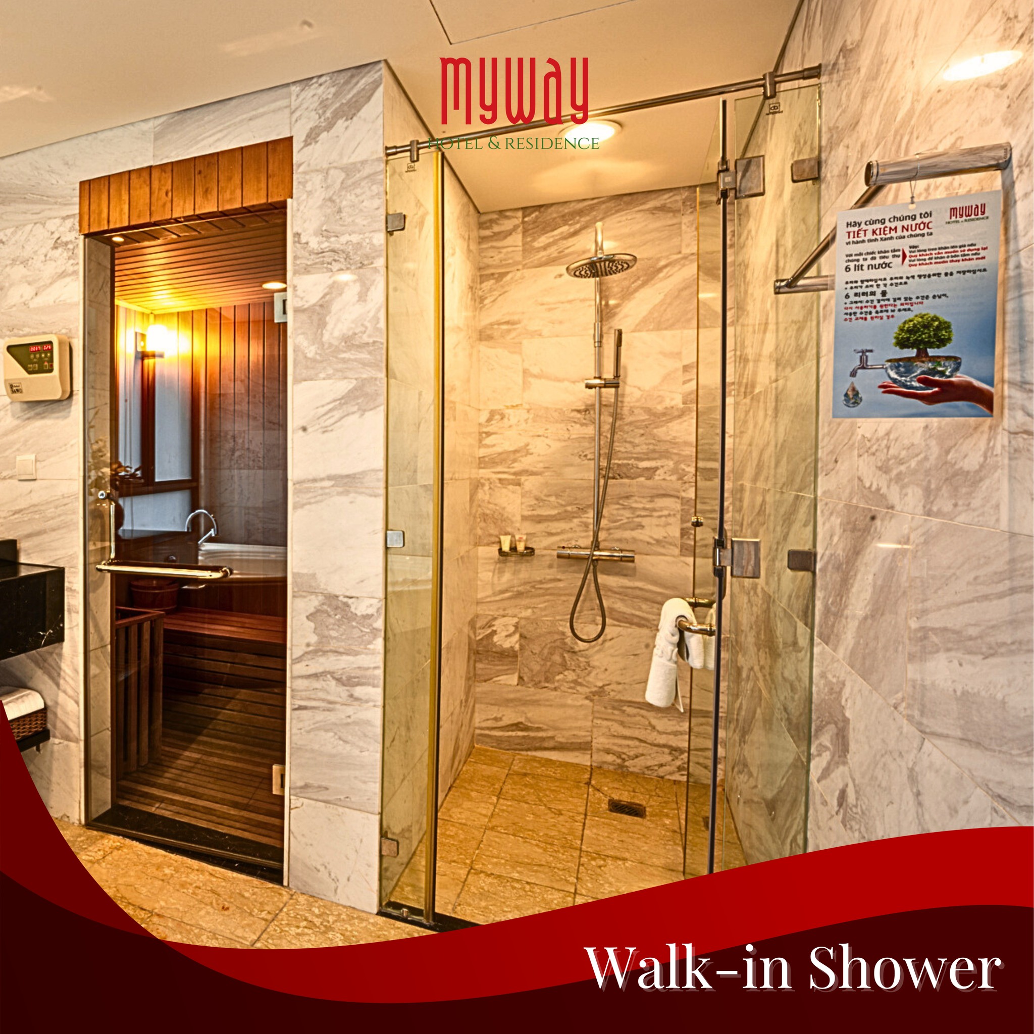 Private Sauna Room: An in-room wellness experience that rejuvenates your body, reduces stress, and enhances overall well-being.